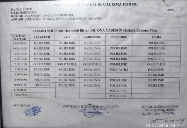 Şehit Kamil 10 Nolu ASM Hizmet Envanteri